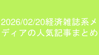 2026/02/20の東洋経済、プレジデント、日経ビジネス、ダイヤモンドの人気記事ランキングまとめ