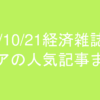 経済雑誌を発行しているThe21、Wedgeウェッジ、ハーバードビジネスレビュー、ニューズウィークのオンラインメディアでよく読まれた人気記事のランキングをそれぞれ1位~10位までまとめています。(10月23日集計)