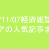 経済雑誌を発行しているThe21、Wedgeウェッジ、ハーバードビジネスレビュー、ニューズウィークのオンラインメディアでよく読まれた人気記事のランキングをそれぞれ1位~10位までまとめています。(11月18日集計)