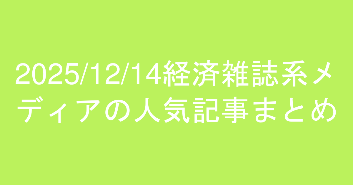 2025/12/14の東洋経済、プレジデント、日経ビジネス、ダイヤモンドの人気記事ランキングまとめ