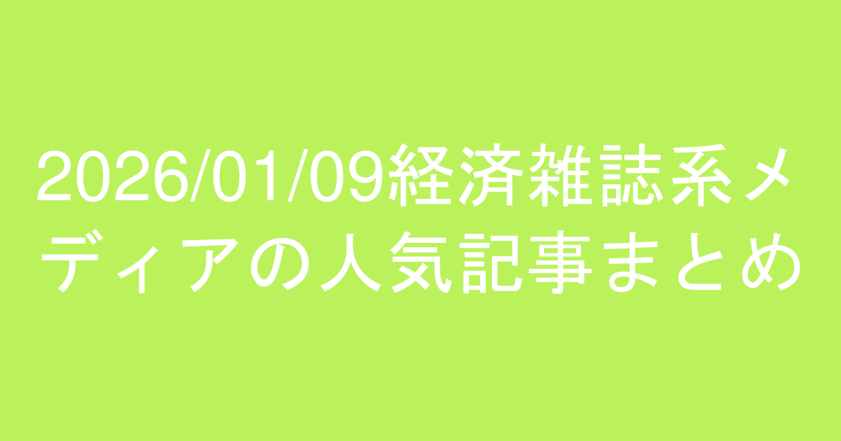 2026/01/09の東洋経済、プレジデント、日経ビジネス、ダイヤモンドの人気記事ランキングまとめ