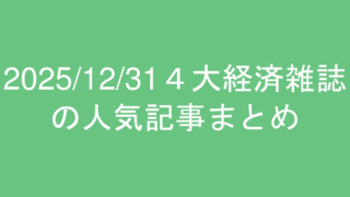 2025/12/31の東洋経済、プレジデント、日経ビジネス、ダイヤモンドの人気記事ランキングまとめ