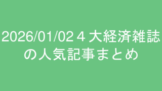 2026/01/02の東洋経済、プレジデント、日経ビジネス、ダイヤモンドの人気記事ランキングまとめ