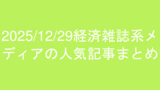 2025/12/29の東洋経済、プレジデント、日経ビジネス、ダイヤモンドの人気記事ランキングまとめ