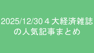 2025/12/30の東洋経済、プレジデント、日経ビジネス、ダイヤモンドの人気記事ランキングまとめ