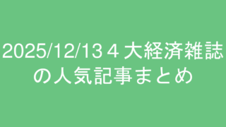 2025/12/13の東洋経済、プレジデント、日経ビジネス、ダイヤモンドの人気記事ランキングまとめ