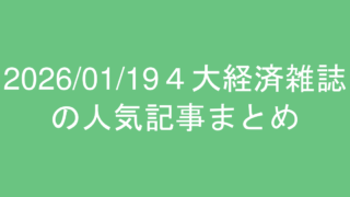 2026/01/19の東洋経済、プレジデント、日経ビジネス、ダイヤモンドの人気記事ランキングまとめ