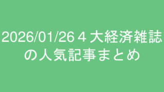 2026/01/26の東洋経済、プレジデント、日経ビジネス、ダイヤモンドの人気記事ランキングまとめ