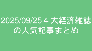 2025/09/24の東洋経済、プレジデント、日経ビジネス、ダイヤモンドの人気記事ランキングまとめ