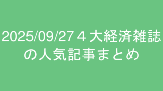 2025/09/27の東洋経済、プレジデント、日経ビジネス、ダイヤモンドの人気記事ランキングまとめ