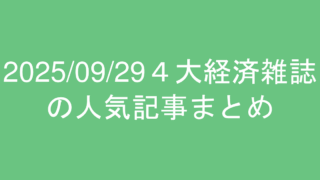 2025/09/29の東洋経済、プレジデント、日経ビジネス、ダイヤモンドの人気記事ランキングまとめ