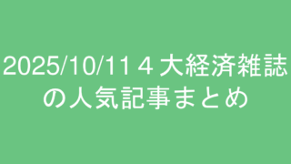 2025/10/11の東洋経済、プレジデント、日経ビジネス、ダイヤモンドの人気記事ランキングまとめ