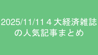 2025/11/11の東洋経済、プレジデント、日経ビジネス、ダイヤモンドの人気記事ランキングまとめ