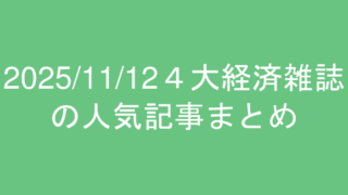 2025/11/12の東洋経済、プレジデント、日経ビジネス、ダイヤモンドの人気記事ランキングまとめ