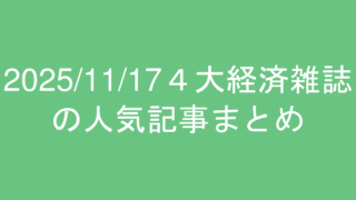 2025/11/17の東洋経済、プレジデント、日経ビジネス、ダイヤモンドの人気記事ランキングまとめ