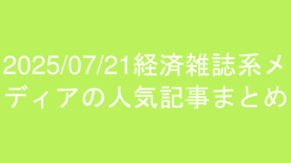 2025/07/20のThe21とWEDGEウェッジとハーバードビジネスレビューとニューズウィークの人気記事ランキングまとめ
