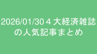 2026/01/30の東洋経済、プレジデント、日経ビジネス、ダイヤモンドの人気記事ランキングまとめ
