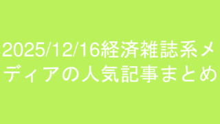 2025/12/16の東洋経済、プレジデント、日経ビジネス、ダイヤモンドの人気記事ランキングまとめ